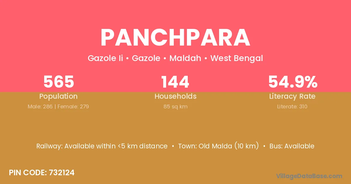 Bolpur (45 km) is the nearest town to Panchpara village for major economic activities and is located approximately 45 km away.