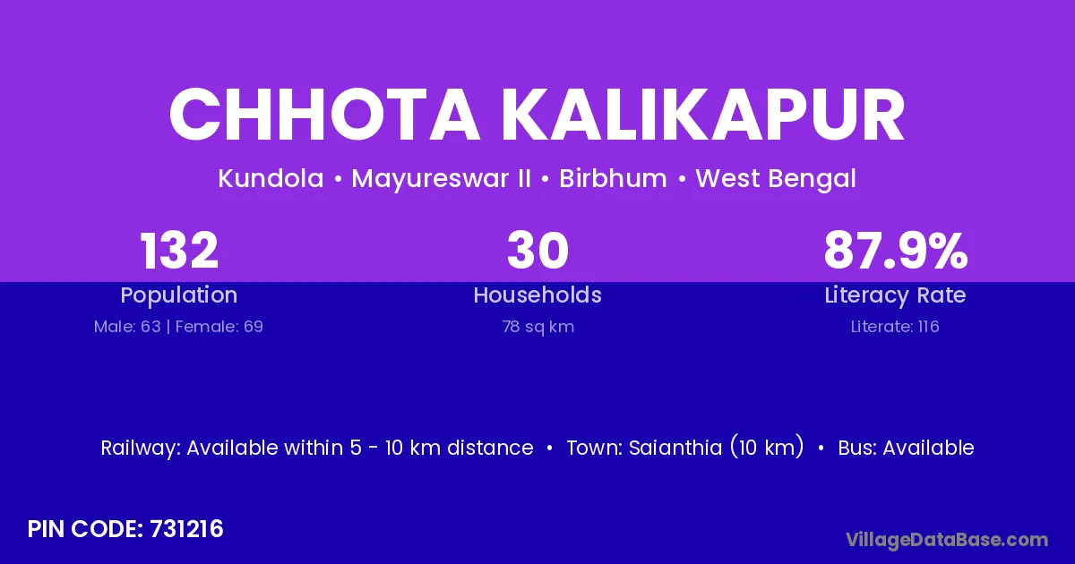 Saianthia (10 km) is the nearest town to Chhota Kalikapur village for major economic activities and is located approximately 10 km away.
