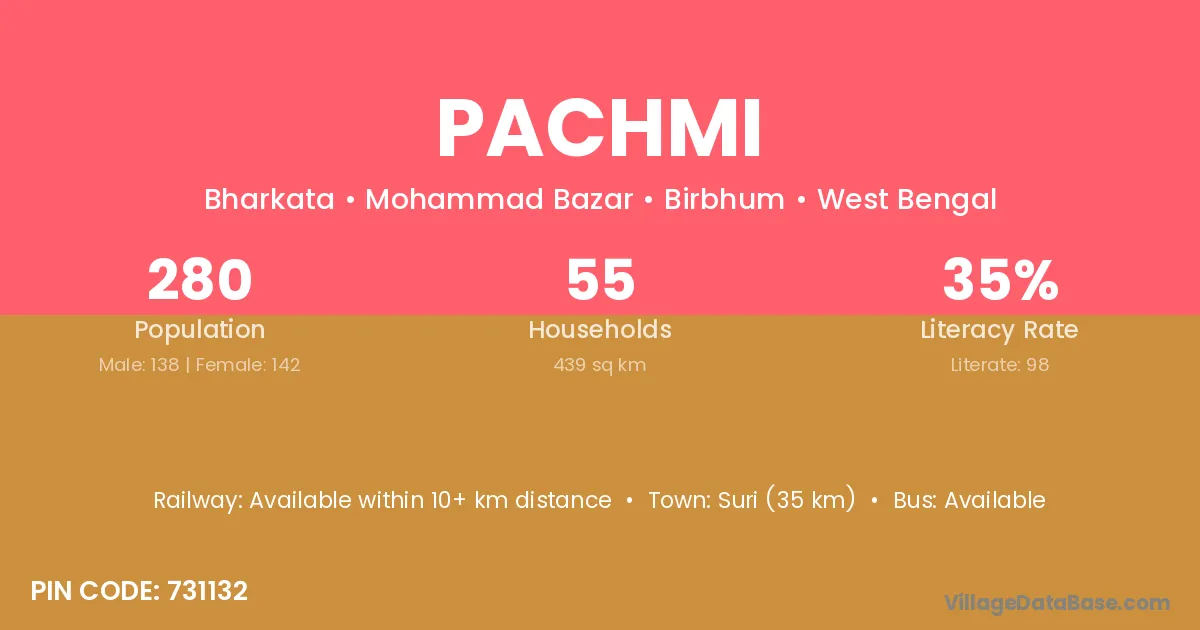 Suri (35 km) is the nearest town to Pachmi village for major economic activities and is located approximately 35 km away.