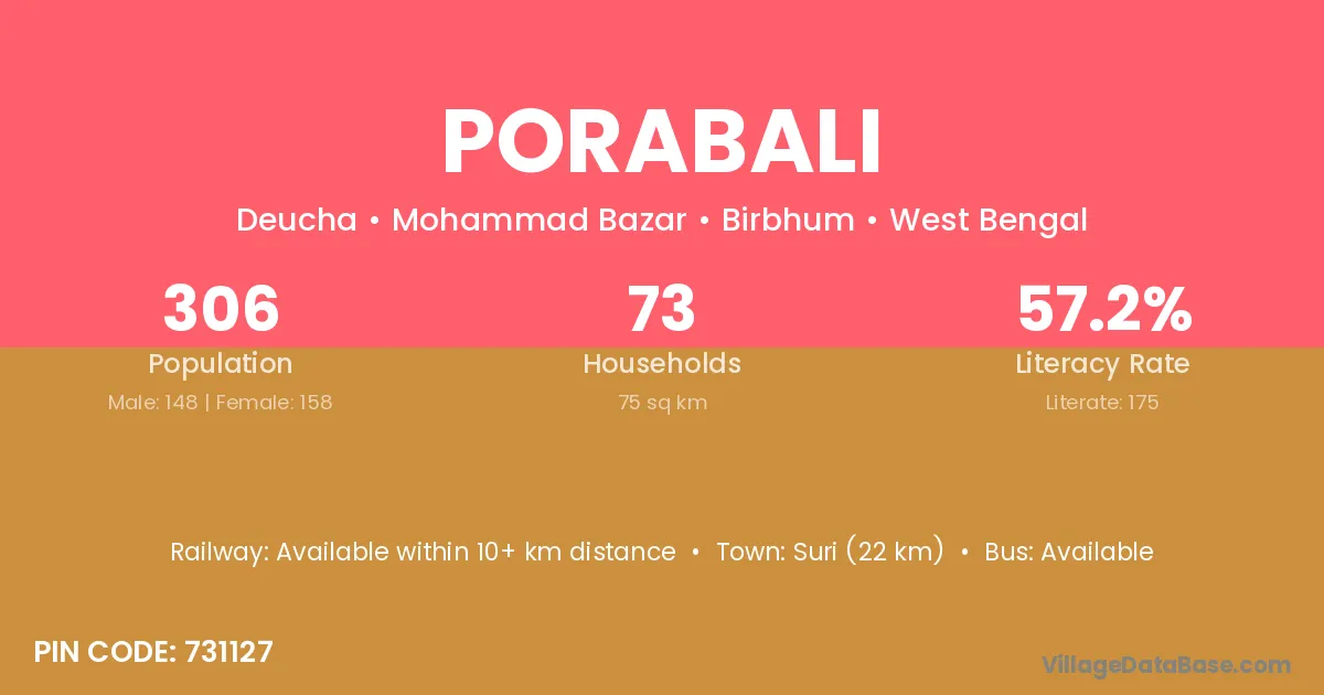 Suri (22 km) is the nearest town to Porabali village for major economic activities and is located approximately 22 km away.