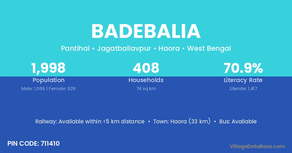 Rampurhat (36 km) is the nearest town to Badebalia village for major economic activities and is located approximately 36 km away.