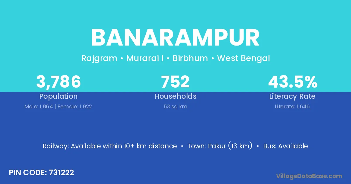 Pakur (13 km) is the nearest town to Banarampur village for major economic activities and is located approximately 13 km away.