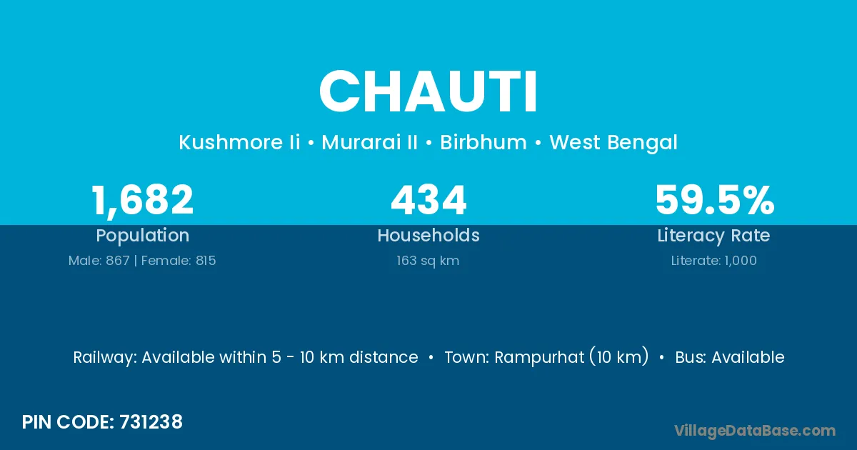 Rampurhat (10 km) is the nearest town to Chauti village for major economic activities and is located approximately 10 km away.