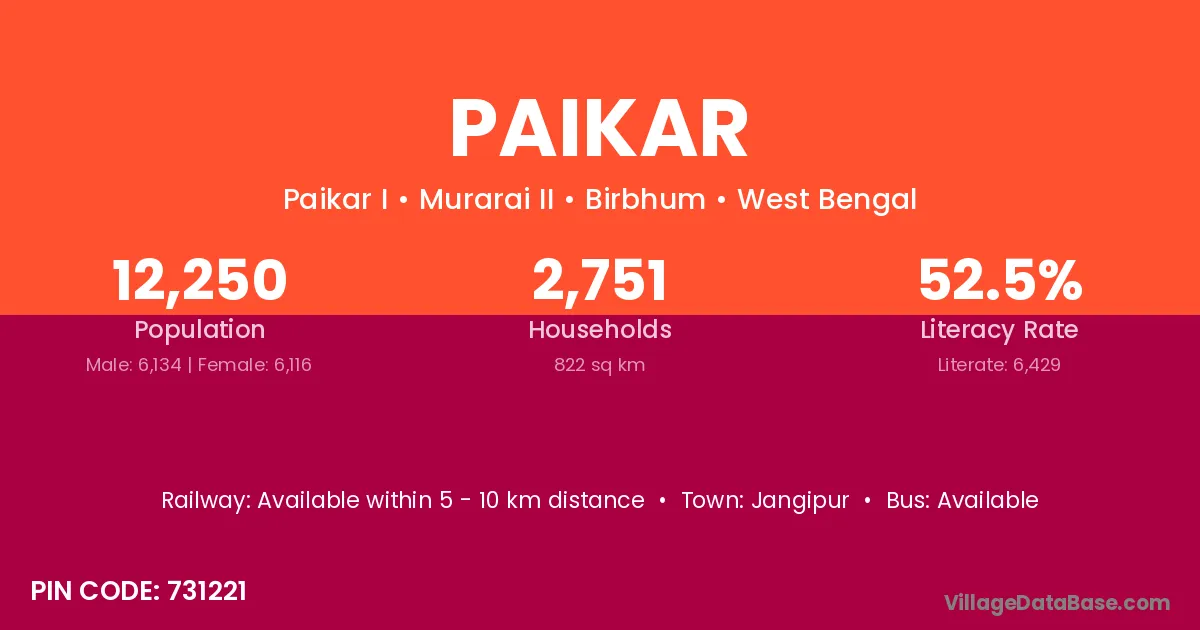 Jangipur is the nearest town to Paikar village for major economic activities