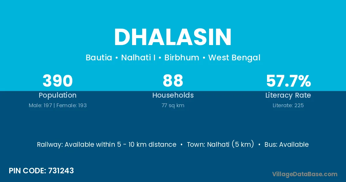 Nalhati (5 km) is the nearest town to Dhalasin village for major economic activities and is located approximately 5 km away.