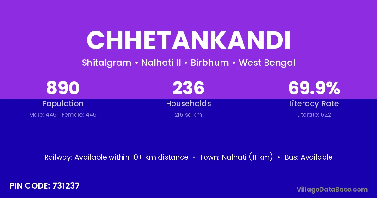 Nalhati (11 km) is the nearest town to Chhetankandi village for major economic activities and is located approximately 11 km away.