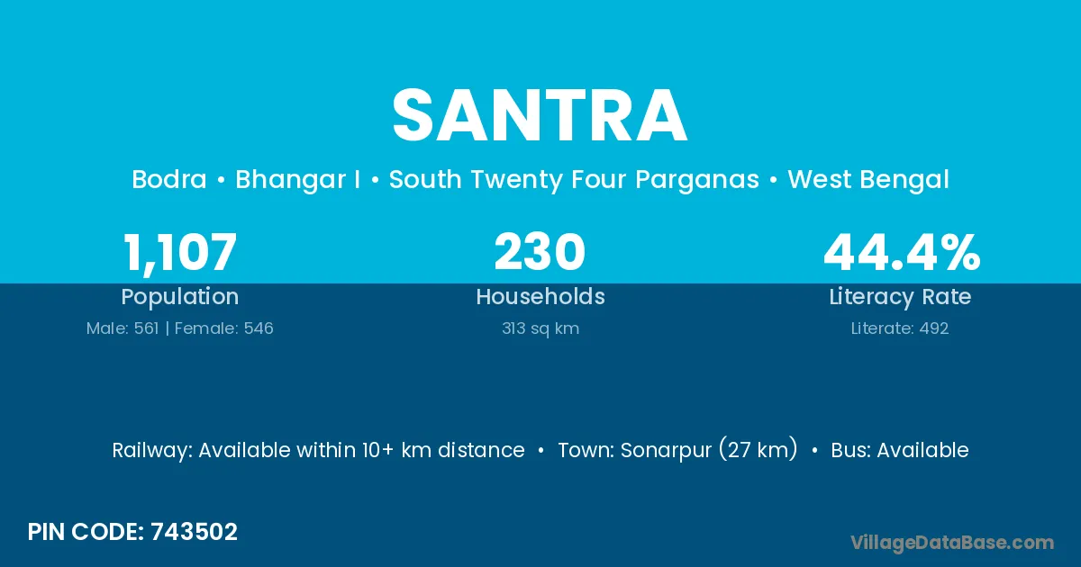 According to Census 2011 information, the village code of Santra village is 731301.