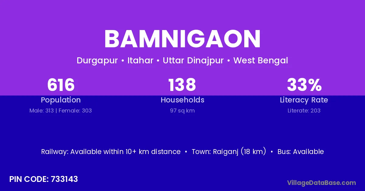 According to Census 2011 information, the village code of Bamnigaon village is 731224.