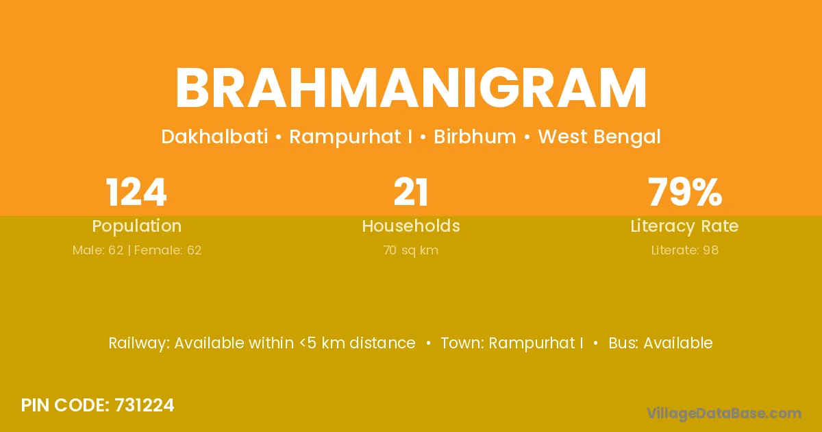 Rampurhat I is the nearest town to Brahmanigram village for major economic activities