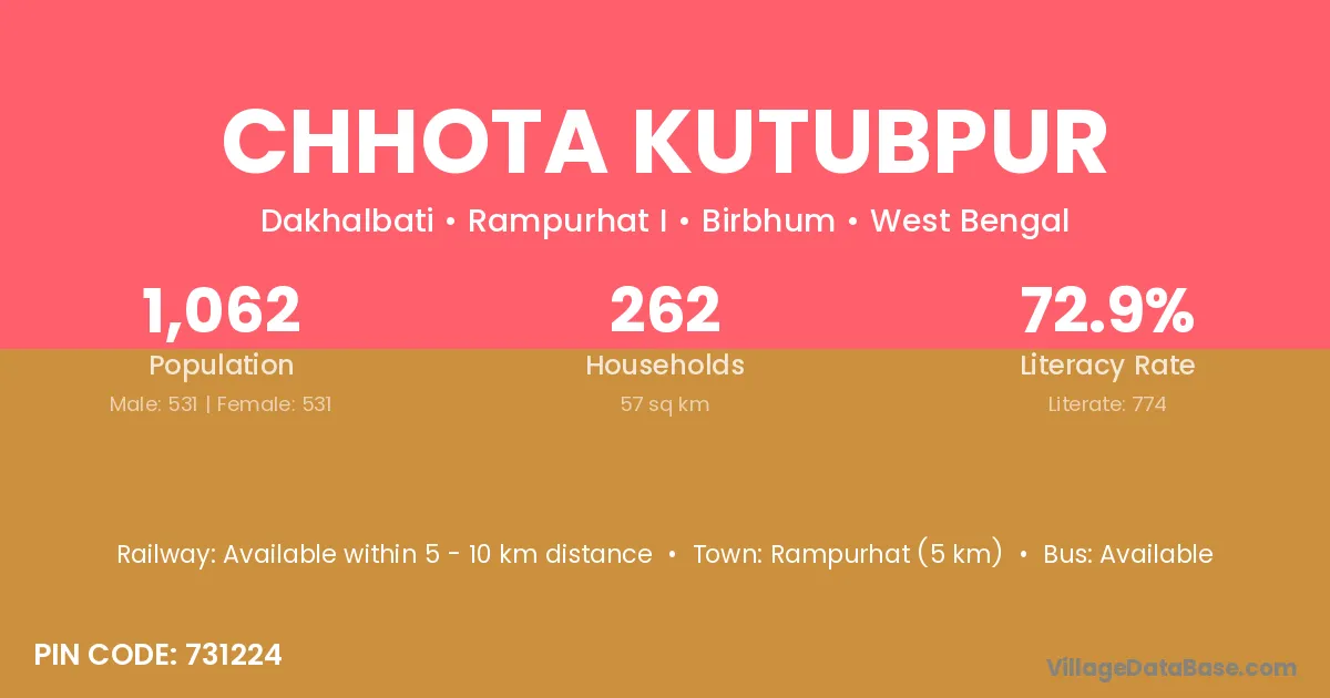 Rampurhat (5 km) is the nearest town to Chhota Kutubpur village for major economic activities and is located approximately 5 km away.