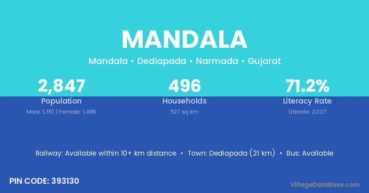 According to Census 2011 information, the village code of Mandala village is 731224.