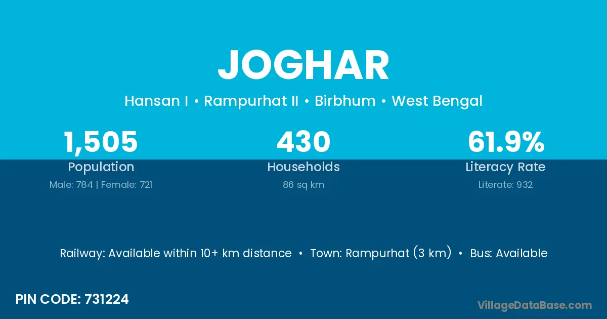 Rampurhat (3 km) is the nearest town to Joghar village for major economic activities and is located approximately 3 km away.