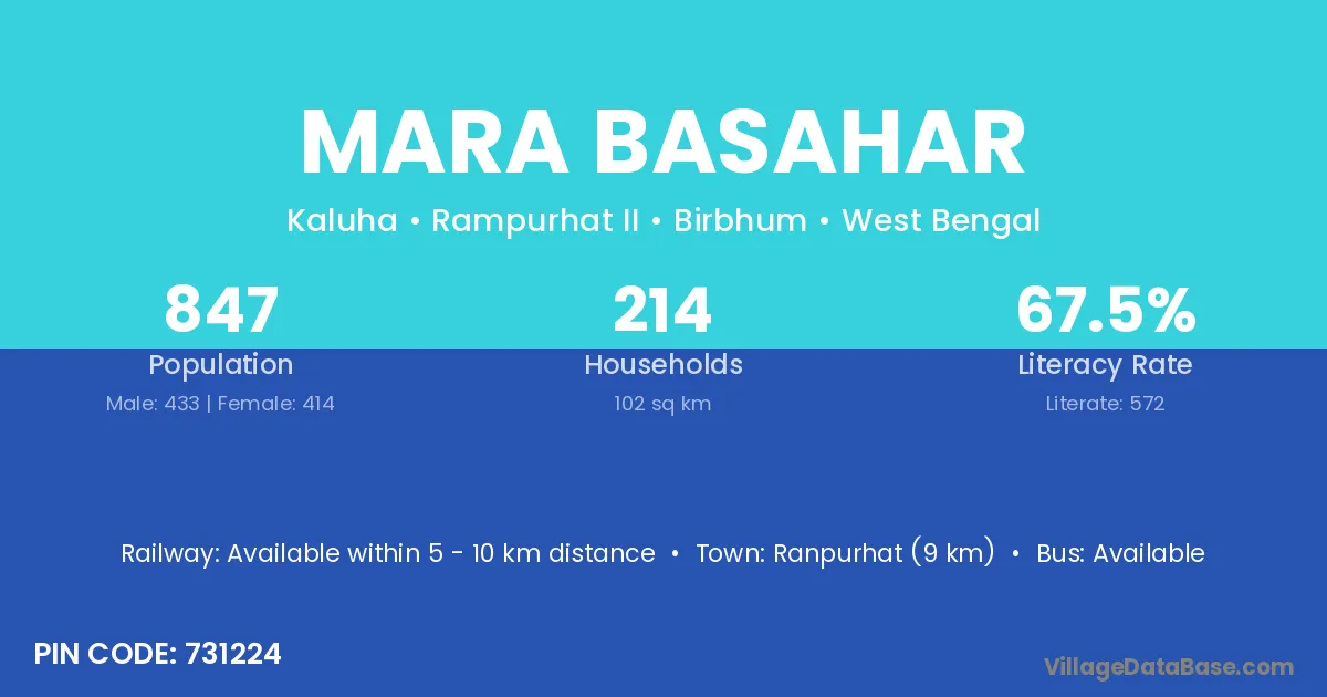 Ranpurhat (9 km) is the nearest town to Mara Basahar village for major economic activities and is located approximately 9 km away.