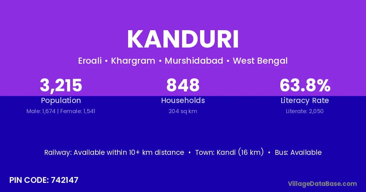Sainthia (5 km) is the nearest town to Kanduri village for major economic activities and is located approximately 5 km away.