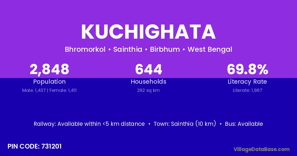 Sainthia (10 km) is the nearest town to Kuchighata village for major economic activities and is located approximately 10 km away.