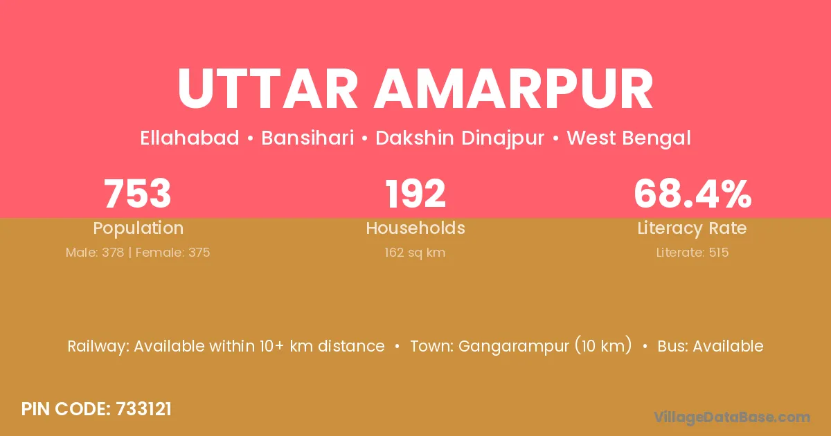 Sainthia (5 km) is the nearest town to Uttar Amarpur village for major economic activities and is located approximately 5 km away.