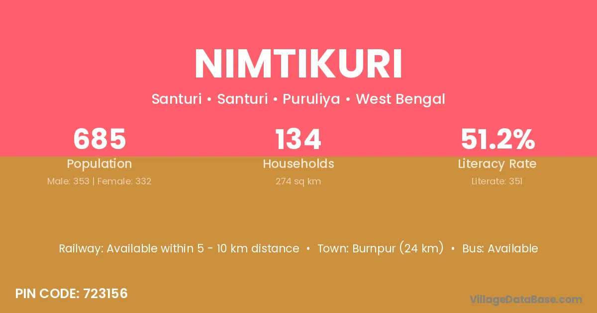 Suri (8 km) is the nearest town to Nimtikuri village for major economic activities and is located approximately 8 km away.