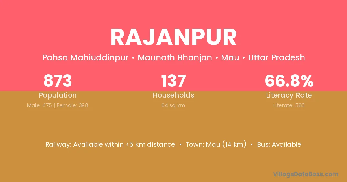 According to Census 2011 information, the village code of Rajanpur village is 731126.