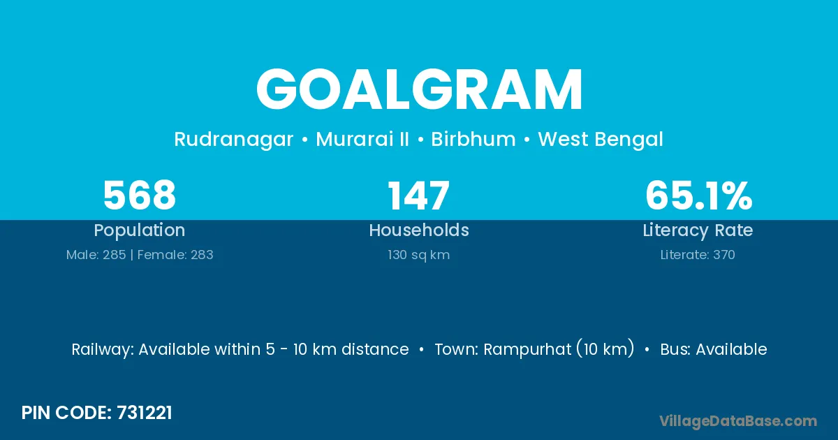 Suri (8 km) is the nearest town to Goalgram village for major economic activities and is located approximately 8 km away.