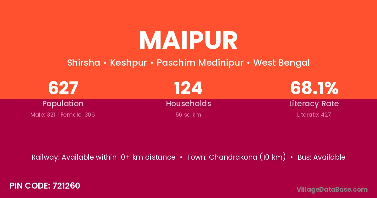 According to Census 2011 information, the village code of Maipur village is 731121.