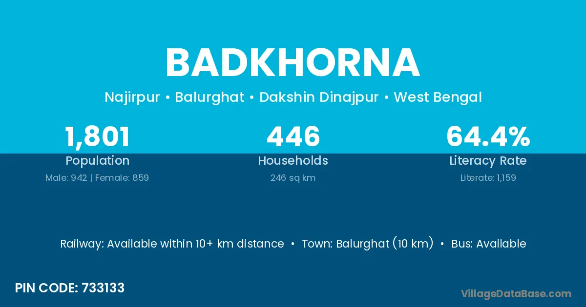 Balurghat (10 km) is the nearest town to Badkhorna village for major economic activities and is located approximately 10 km away.