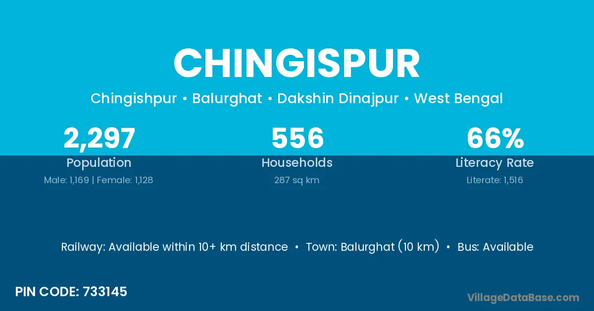 Balurghat (10 km) is the nearest town to Chingispur village for major economic activities and is located approximately 10 km away.