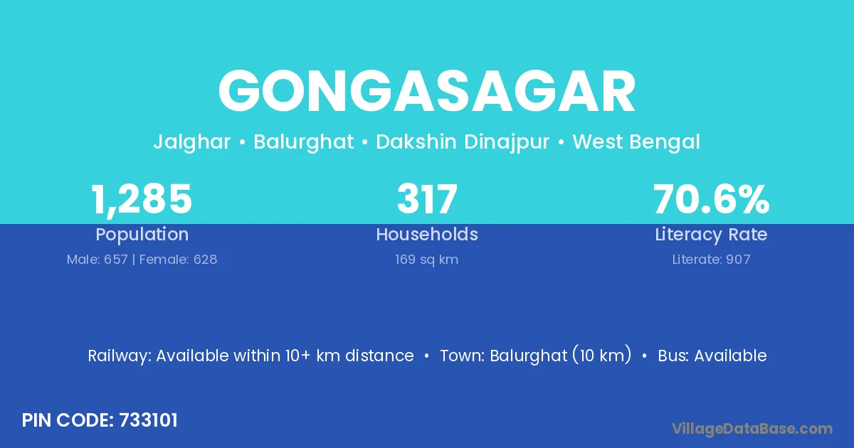 Balurghat (10 km) is the nearest town to Gongasagar village for major economic activities and is located approximately 10 km away.