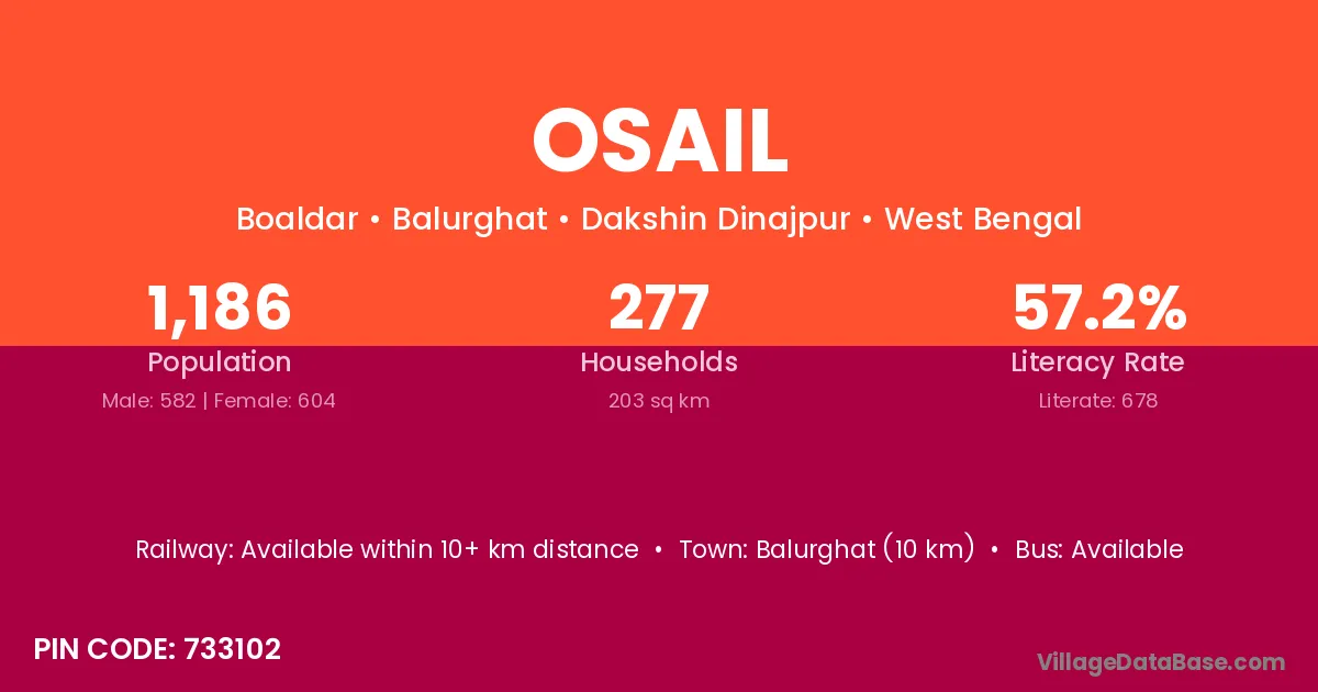 Balurghat (10 km) is the nearest town to Osail village for major economic activities and is located approximately 10 km away.