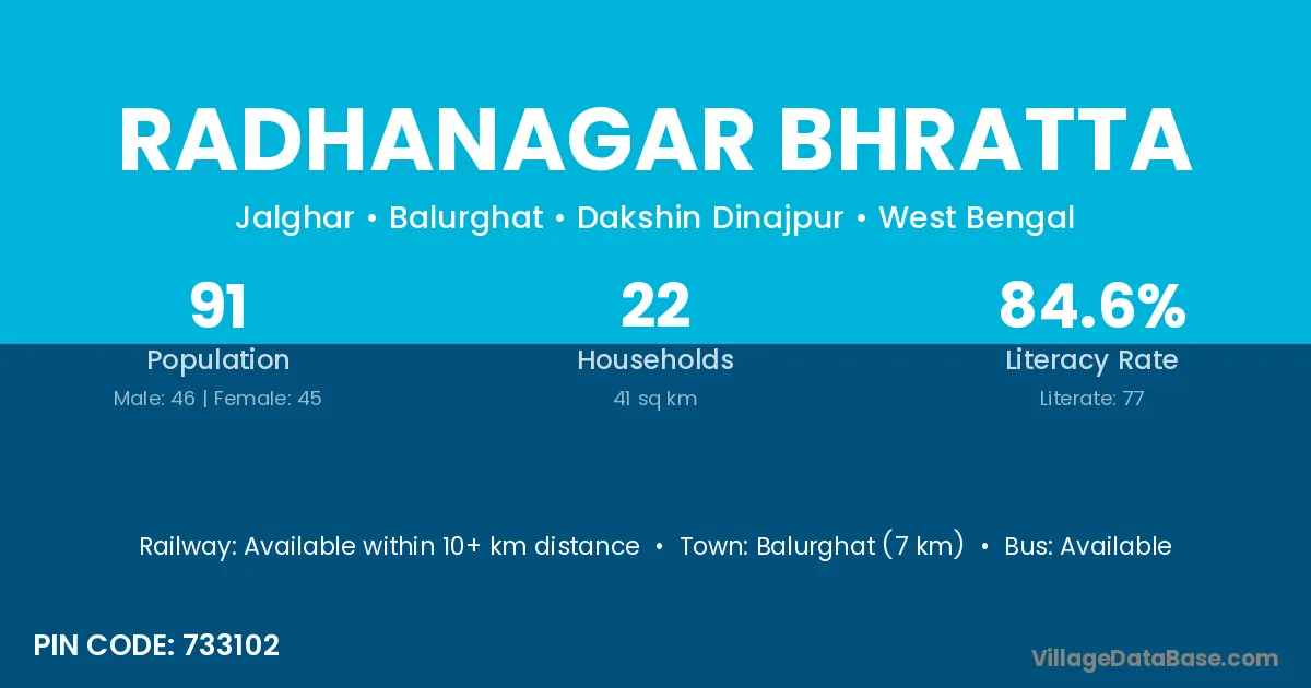 Balurghat (7 km) is the nearest town to Radhanagar Bhratta village for major economic activities and is located approximately 7 km away.