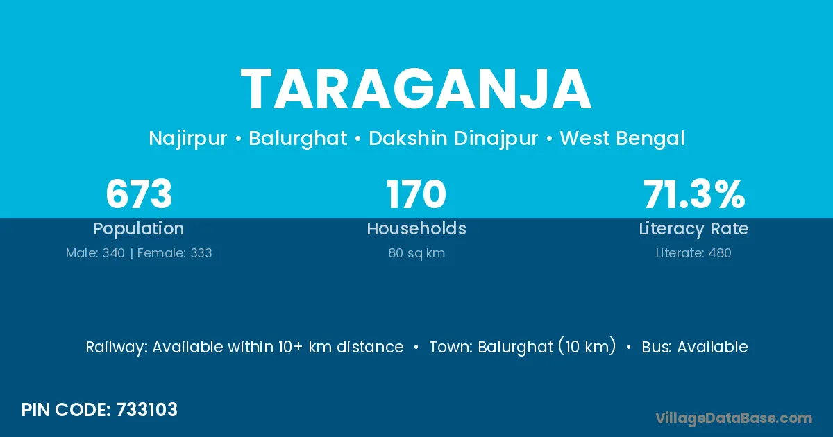Balurghat (10 km) is the nearest town to Taraganja village for major economic activities and is located approximately 10 km away.