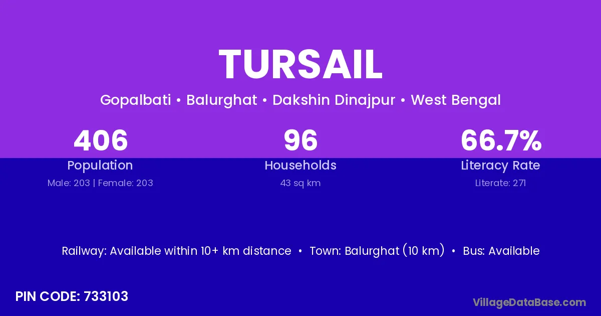 Balurghat (10 km) is the nearest town to Tursail village for major economic activities and is located approximately 10 km away.