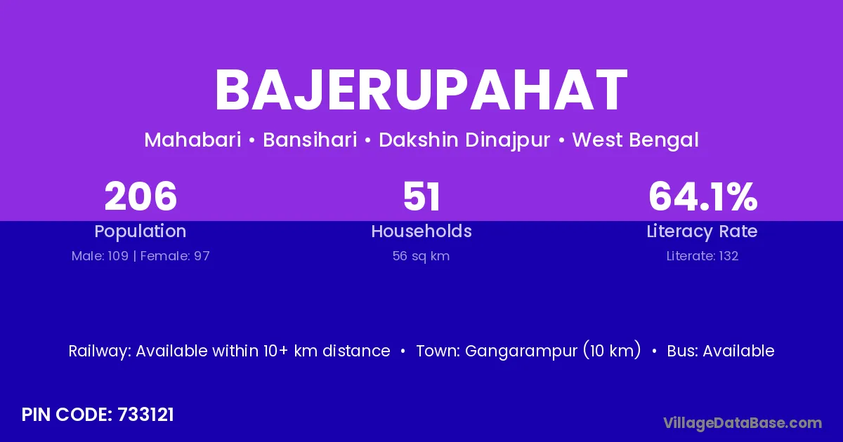 Gangarampur (10 km) is the nearest town to Bajerupahat village for major economic activities and is located approximately 10 km away.