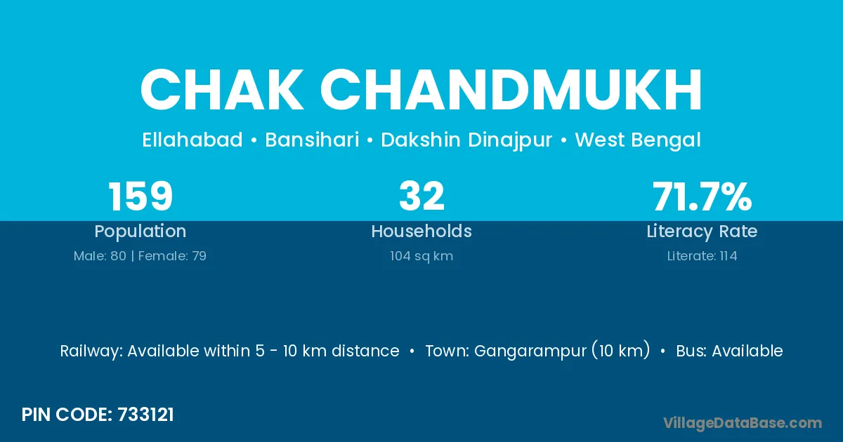 Gangarampur (10 km) is the nearest town to Chak Chandmukh village for major economic activities and is located approximately 10 km away.