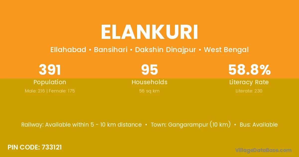 Gangarampur (10 km) is the nearest town to Elankuri village for major economic activities and is located approximately 10 km away.