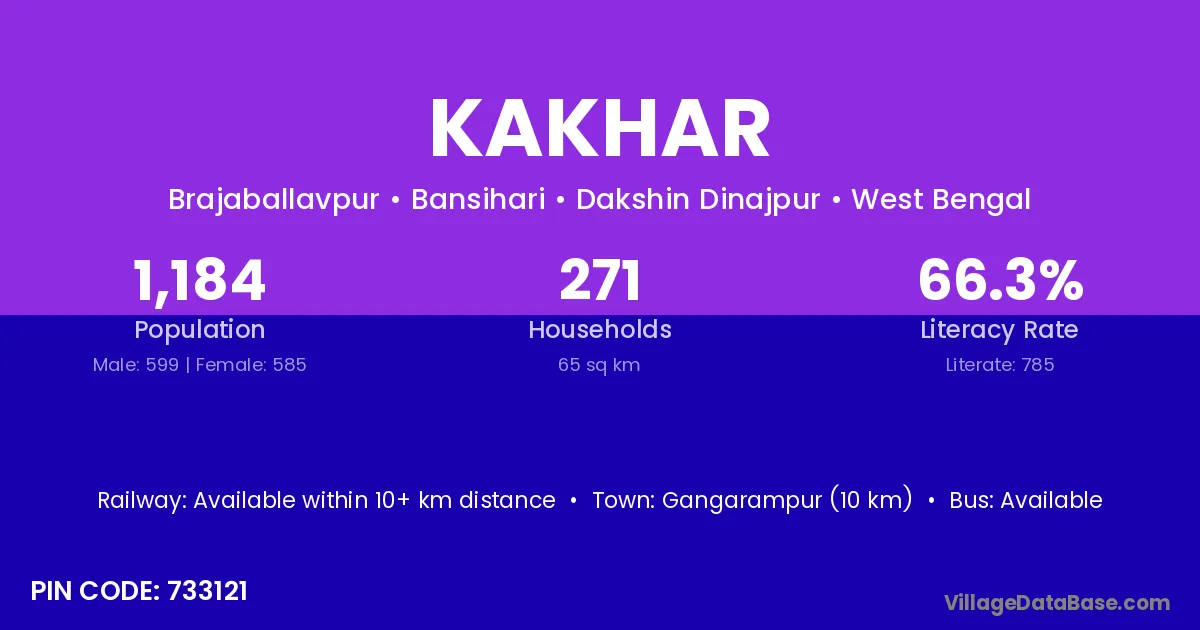 Gangarampur (10 km) is the nearest town to Kakhar village for major economic activities and is located approximately 10 km away.