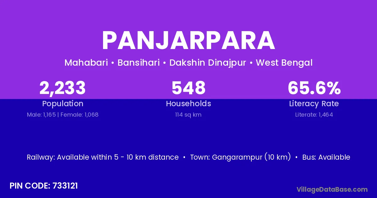 Gangarampur (10 km) is the nearest town to Panjarpara village for major economic activities and is located approximately 10 km away.