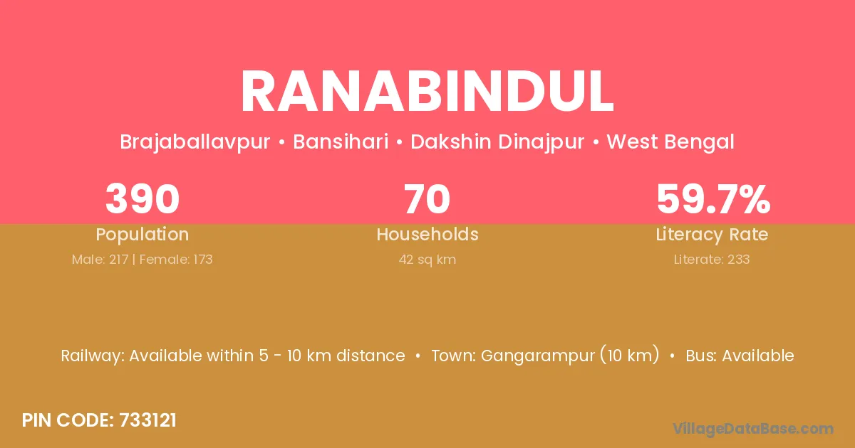 Gangarampur (10 km) is the nearest town to Ranabindul village for major economic activities and is located approximately 10 km away.