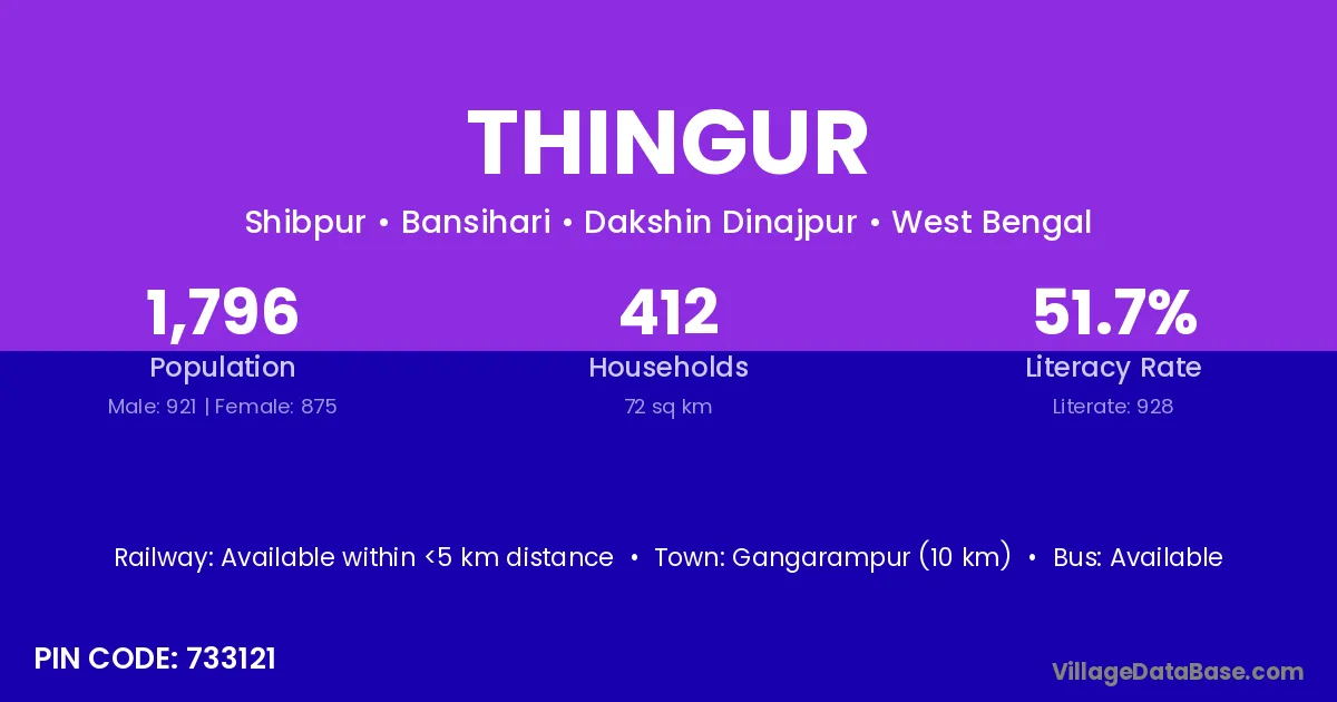 Gangarampur (10 km) is the nearest town to Thingur village for major economic activities and is located approximately 10 km away.