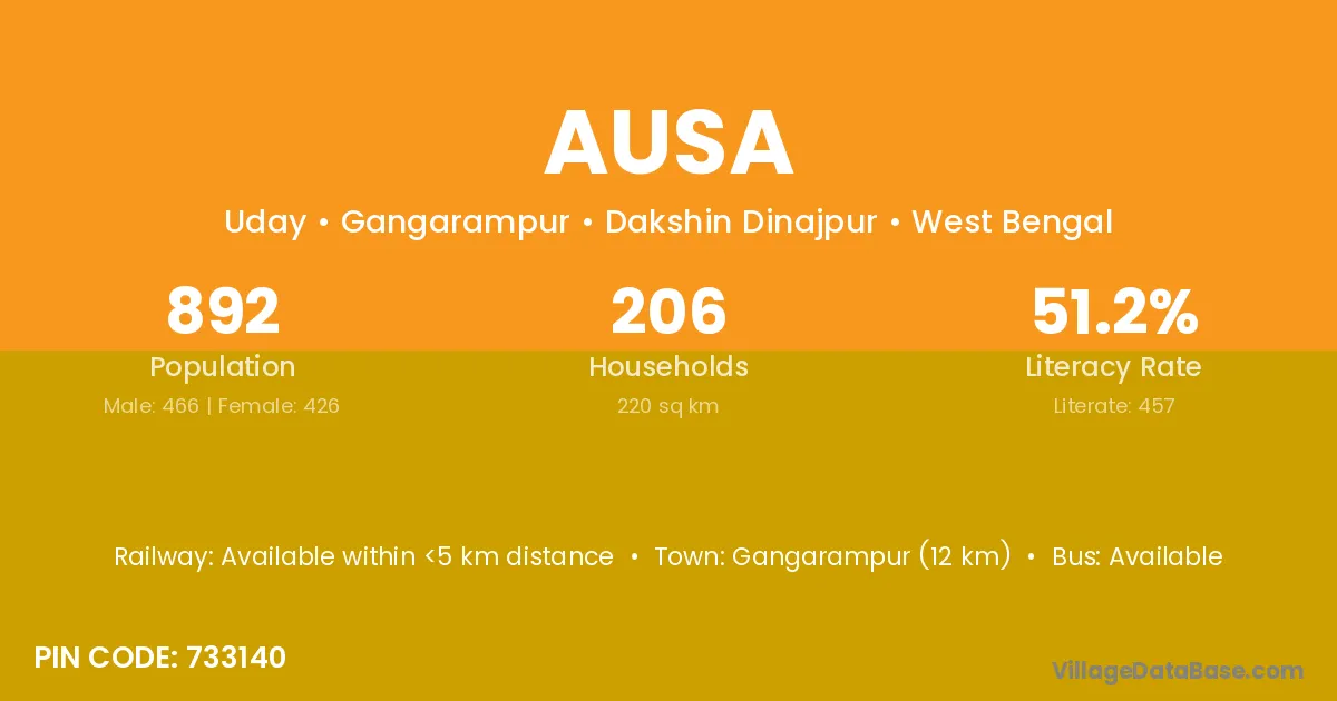 Gangarampur (12 km) is the nearest town to Ausa village for major economic activities and is located approximately 12 km away.