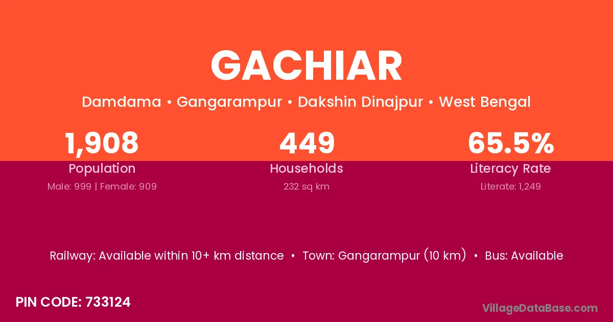 Gangarampur (10 km) is the nearest town to Gachiar village for major economic activities and is located approximately 10 km away.