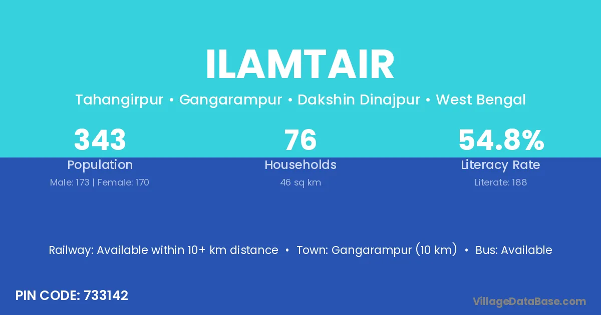 Gangarampur (10 km) is the nearest town to Ilamtair village for major economic activities and is located approximately 10 km away.