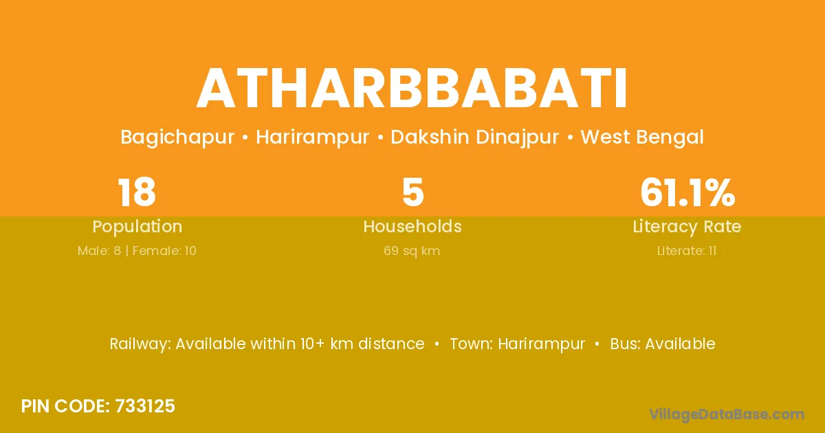 Atharbbabati village has a total population of 18 people, of which 8 are males and 10 are females.