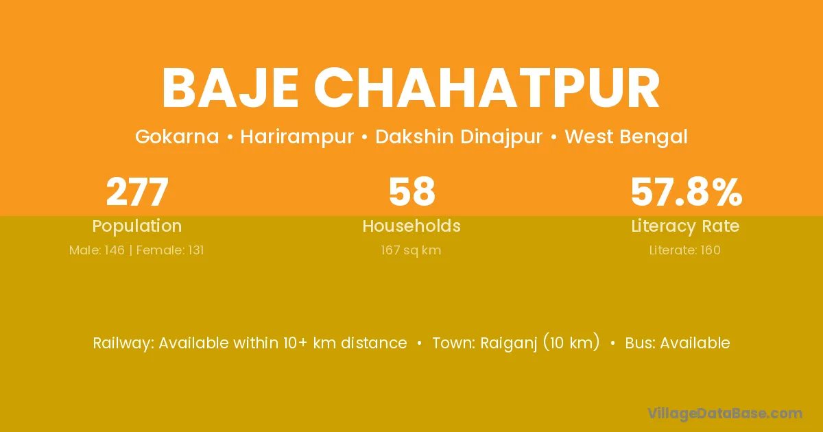 Raiganj (10 km) is the nearest town to Baje Chahatpur village for major economic activities and is located approximately 10 km away.