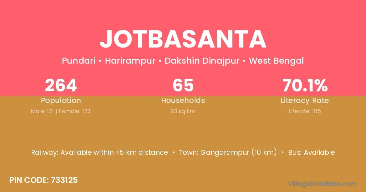 Gangarampur (10 km) is the nearest town to Jotbasanta village for major economic activities and is located approximately 10 km away.