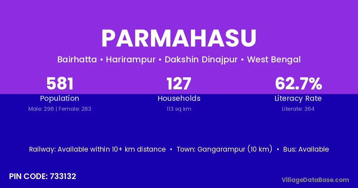 Gangarampur (10 km) is the nearest town to Parmahasu village for major economic activities and is located approximately 10 km away.