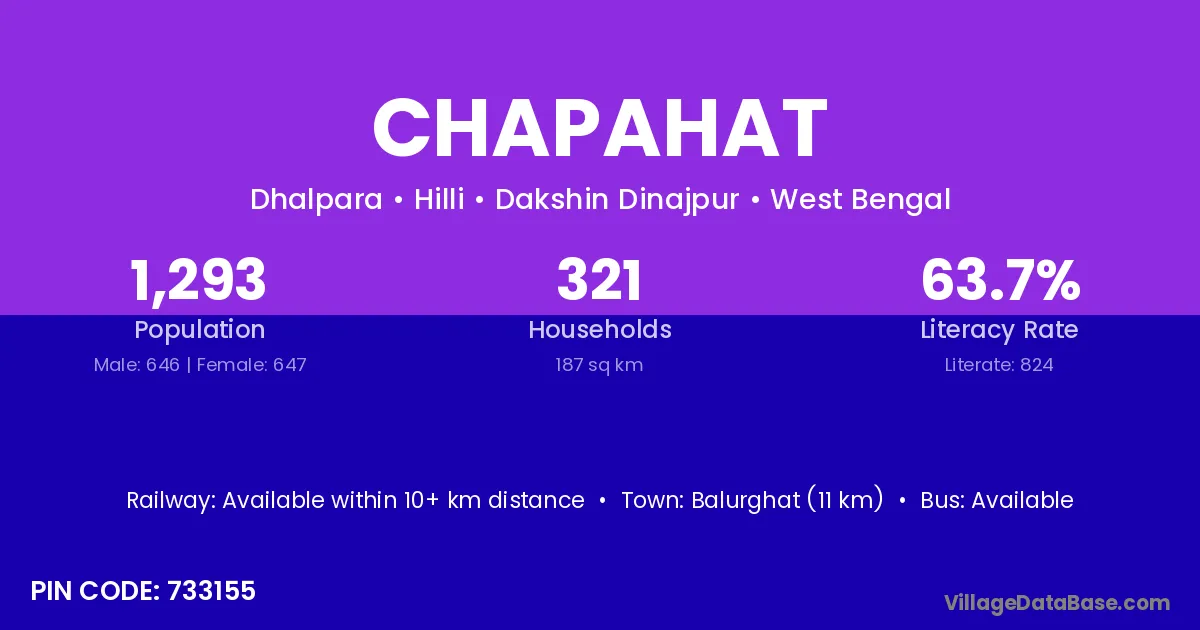 Balurghat (11 km) is the nearest town to Chapahat village for major economic activities and is located approximately 11 km away.