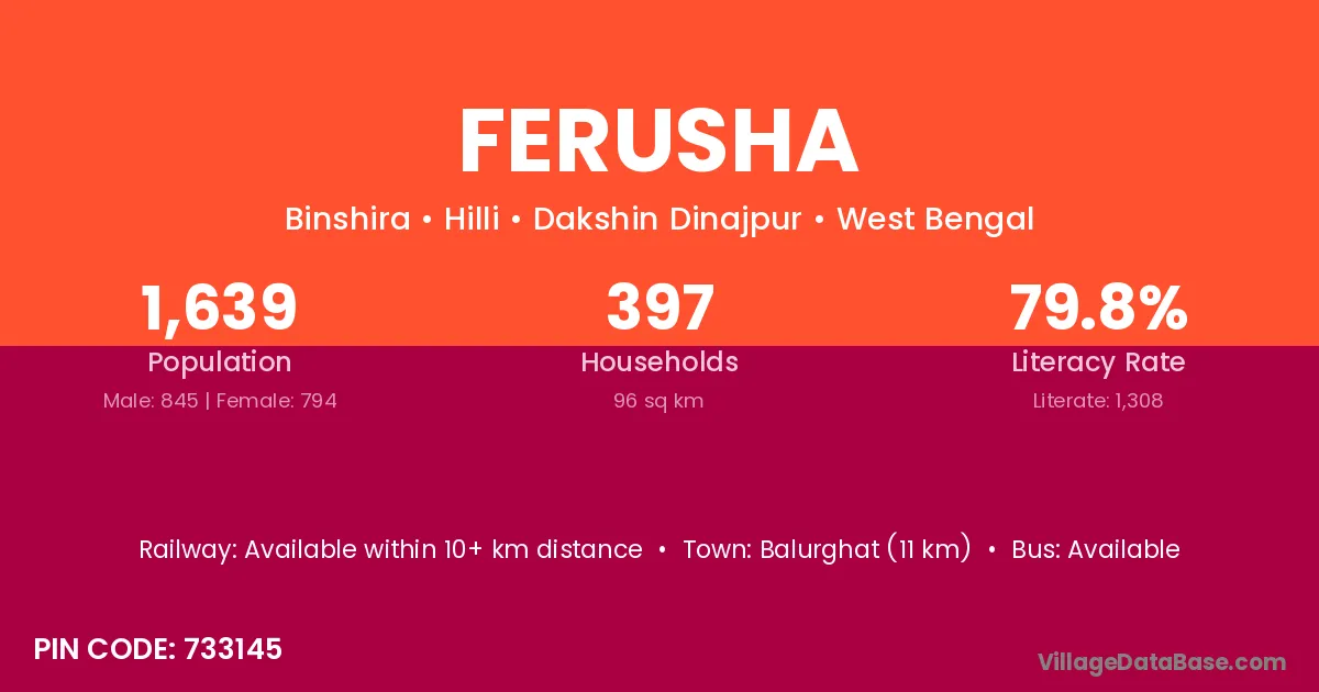 Balurghat (11 km) is the nearest town to Ferusha village for major economic activities and is located approximately 11 km away.
