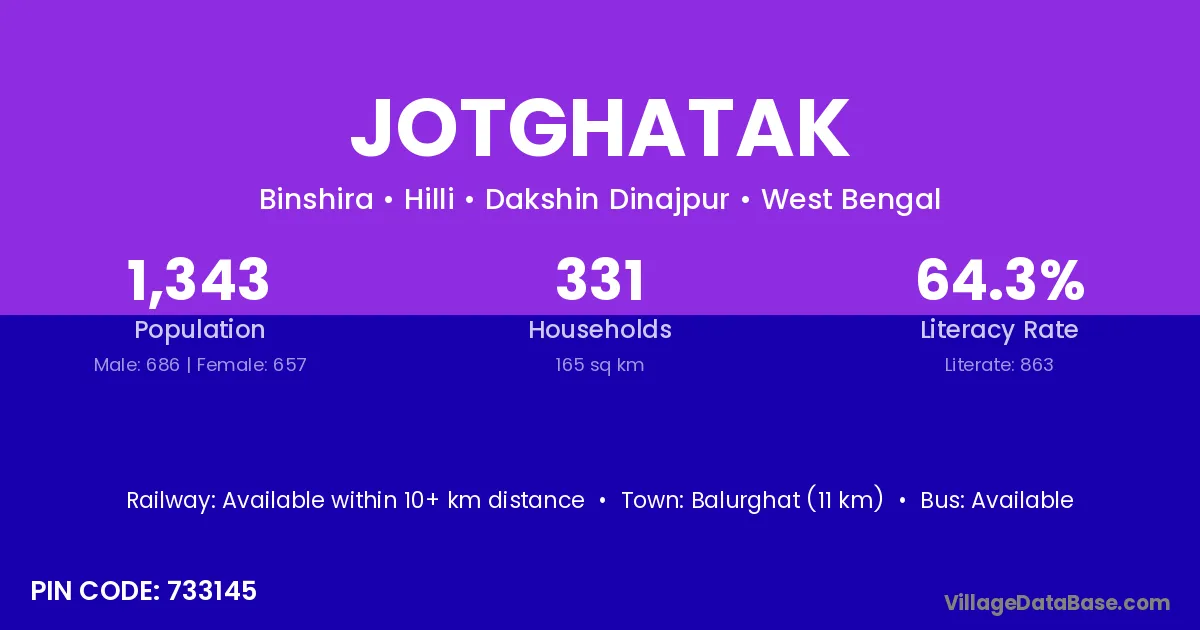 Balurghat (11 km) is the nearest town to Jotghatak village for major economic activities and is located approximately 11 km away.