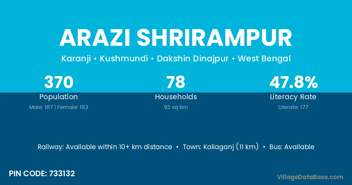 Kaliaganj (11 km) is the nearest town to Arazi Shrirampur village for major economic activities and is located approximately 11 km away.