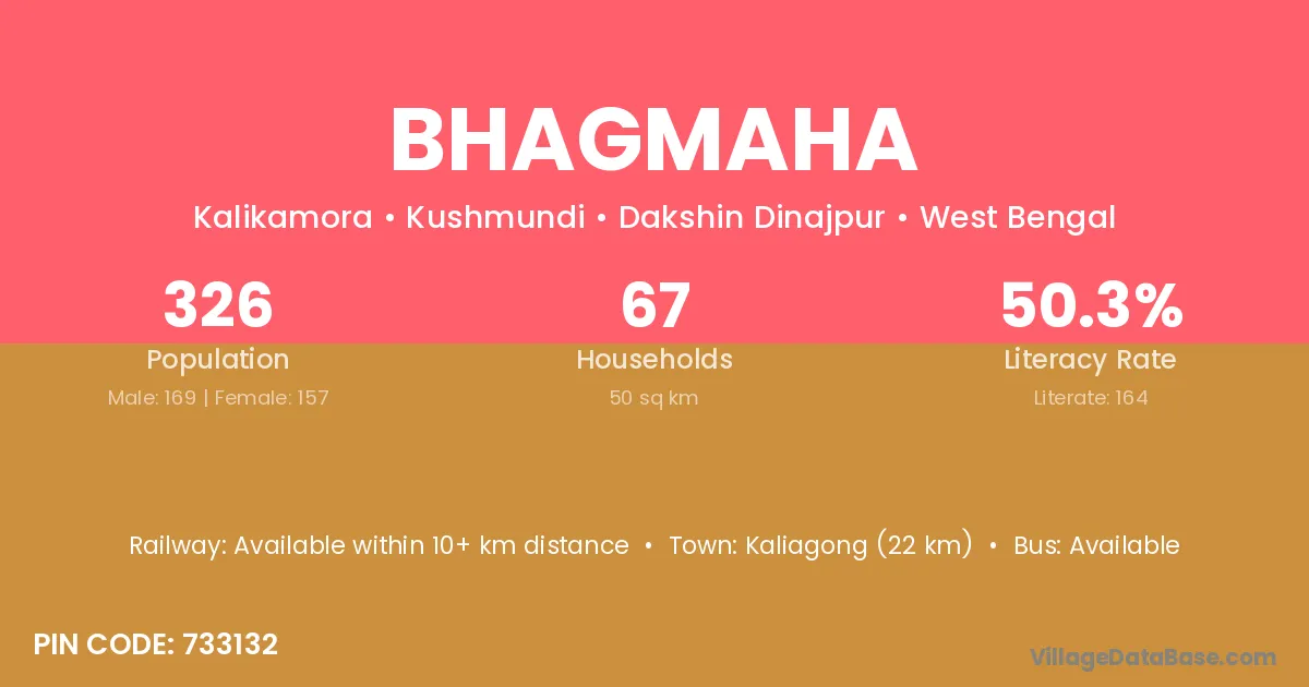 Kaliagong (22 km) is the nearest town to Bhagmaha village for major economic activities and is located approximately 22 km away.